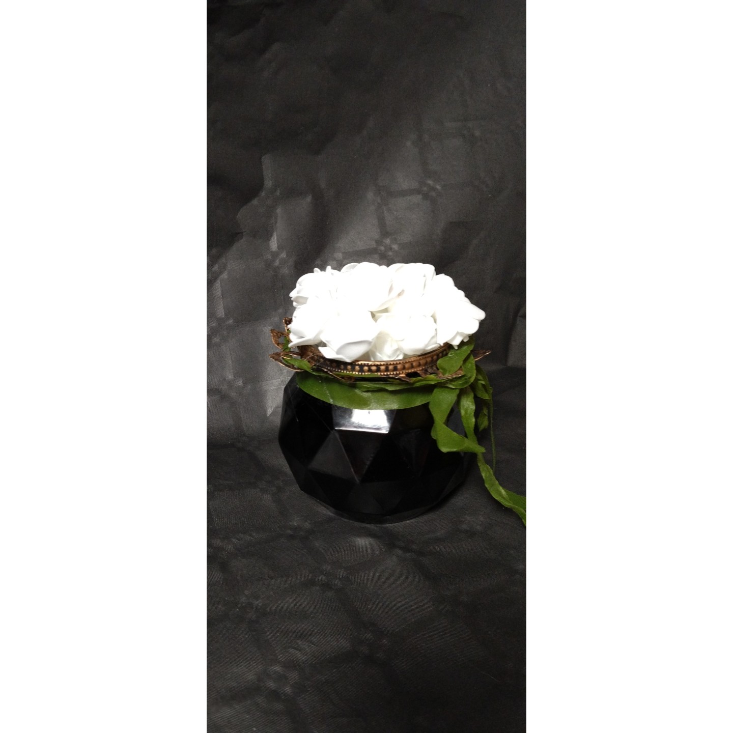 • Decration florale fleurs artificielles sur ceramique noire avec fleurs blanches